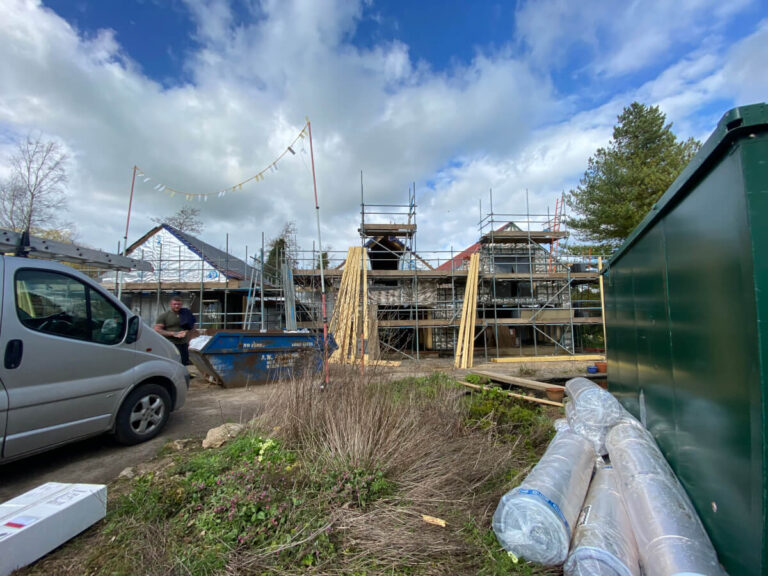 New Dwelling, Westcombe. Pre-fabricated timber frame goes up fast.