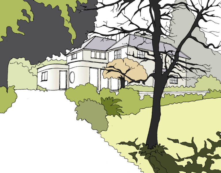 White Cottage, Hampshire Delighted to get Planning permission today for this fabulous refurbishment and extension project to a 1920’s brick built house in Hampshire. While the first floor element of the extension follows the roofline and architecture of the original house, the large ground floor takes inspiration from 1920’s Art Deco ideas to create a beautiful new kitchen and dining area that opens onto the main garden at the front of the house. Designs also include internal reordering and refurbishment, and a new external insulation with silicone render finish.